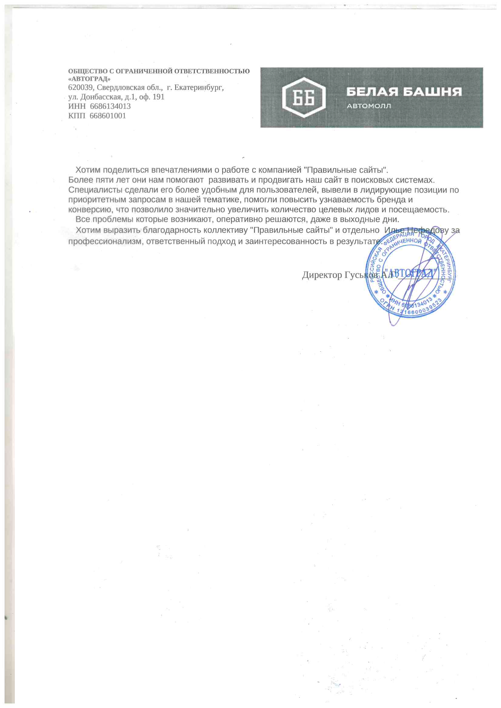 Хотим выразить благодарность коллективу "Правильные сайты" и отдельно Илье Нефедову за профессионализм, ответственный подход и заинтересованность в результате