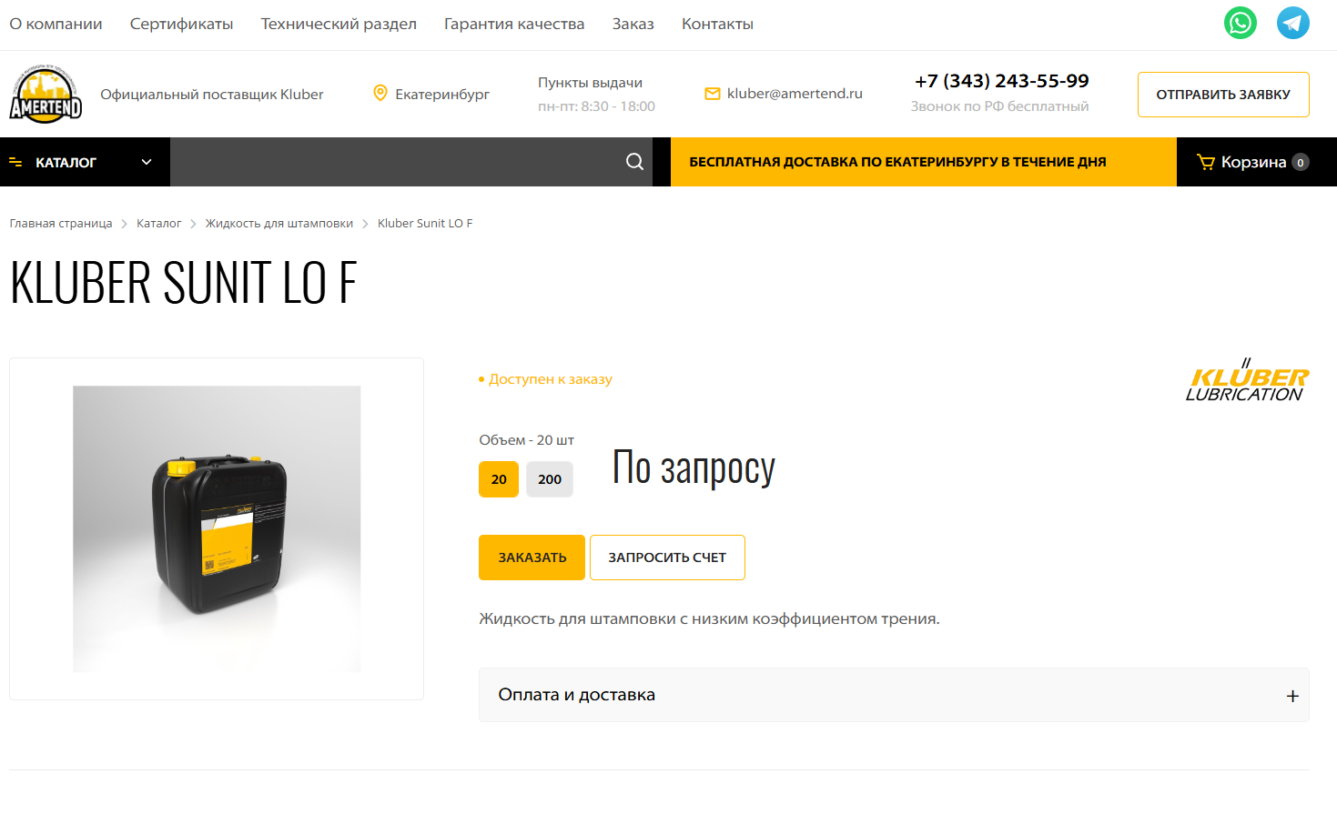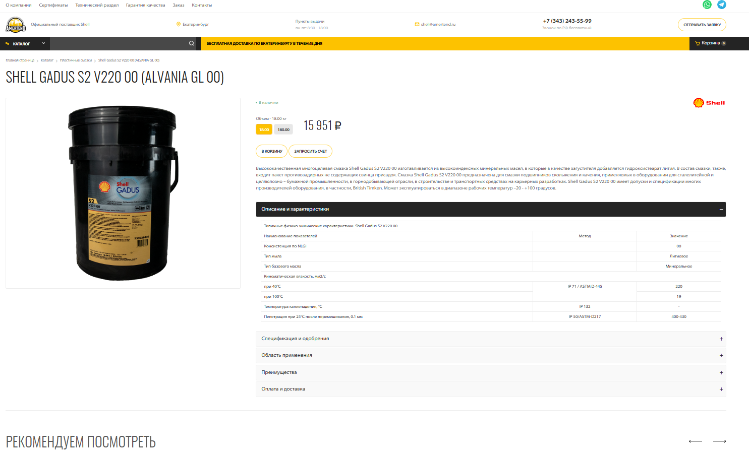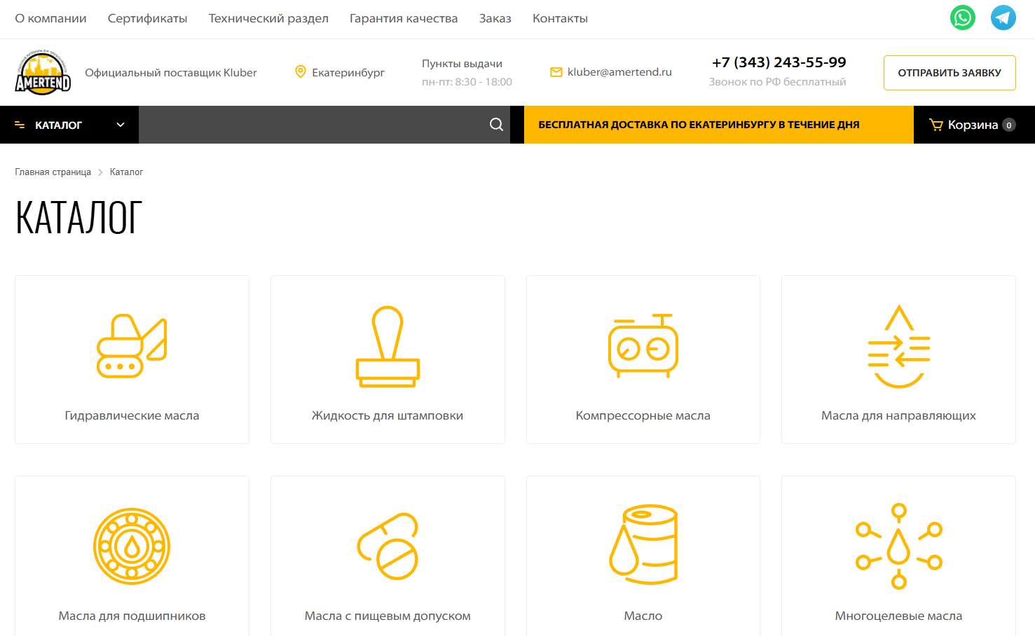 Клиент Amertend — это специализированный мультибрендовый интернет-магазин из Екатеринбурга, занимающийся продажей промышленных масел и смазок. У компании одно представительство и склад, более 5000 наименований товаров, включая такие бренды, как Mobil, Total, Shell, Kluber, Blaser и другие. Основная ниша — масла и смазочные материалы для промышленного и автомобильного использования.