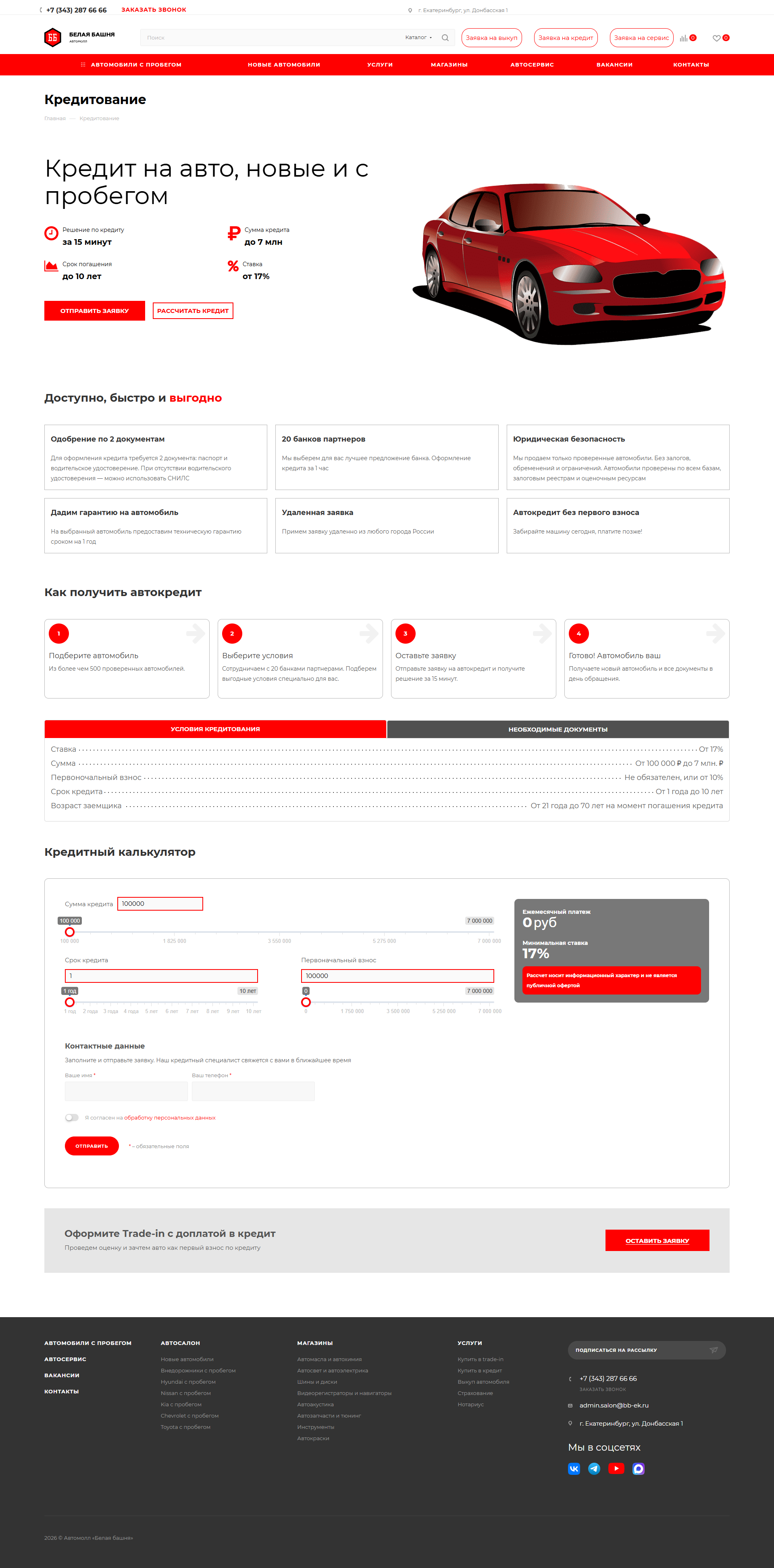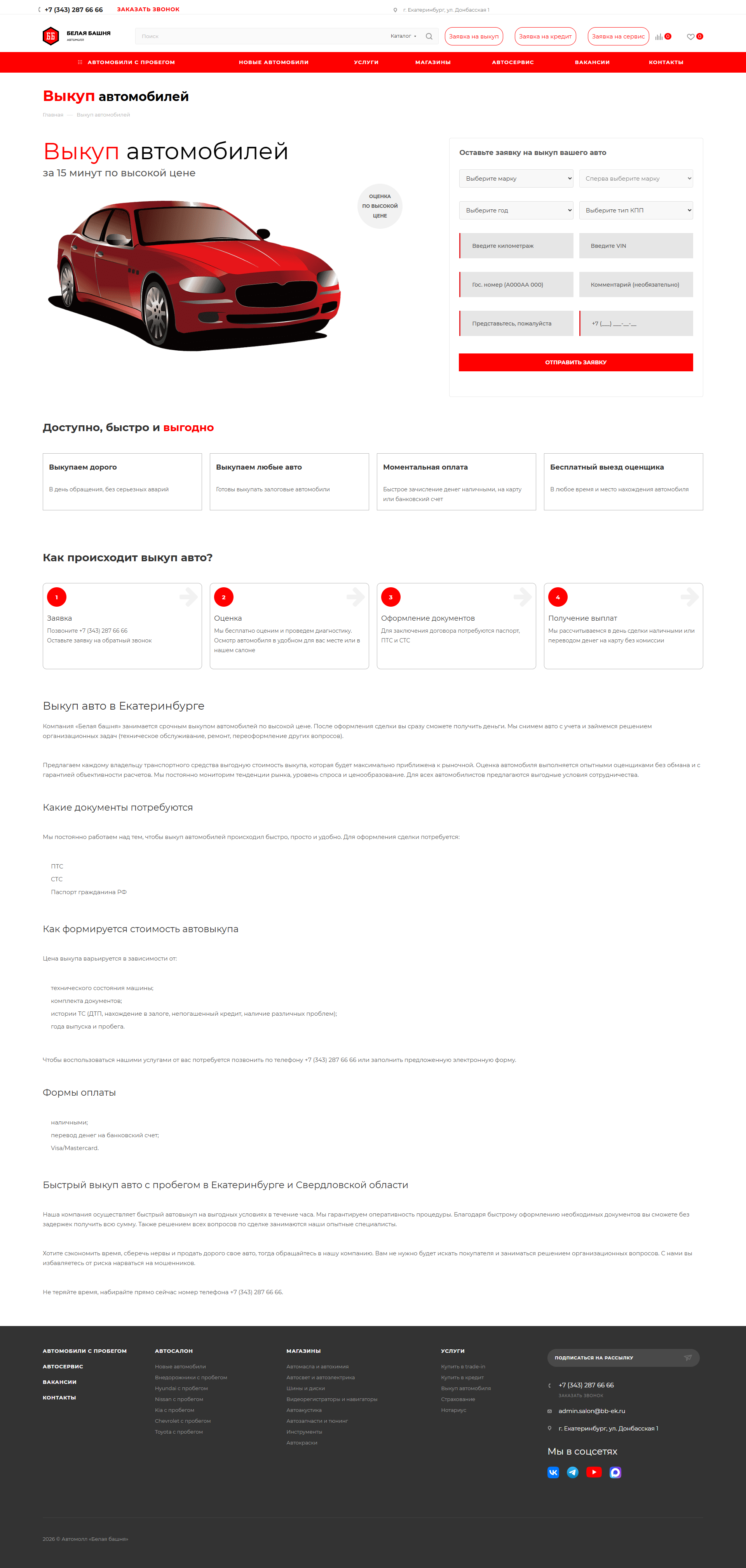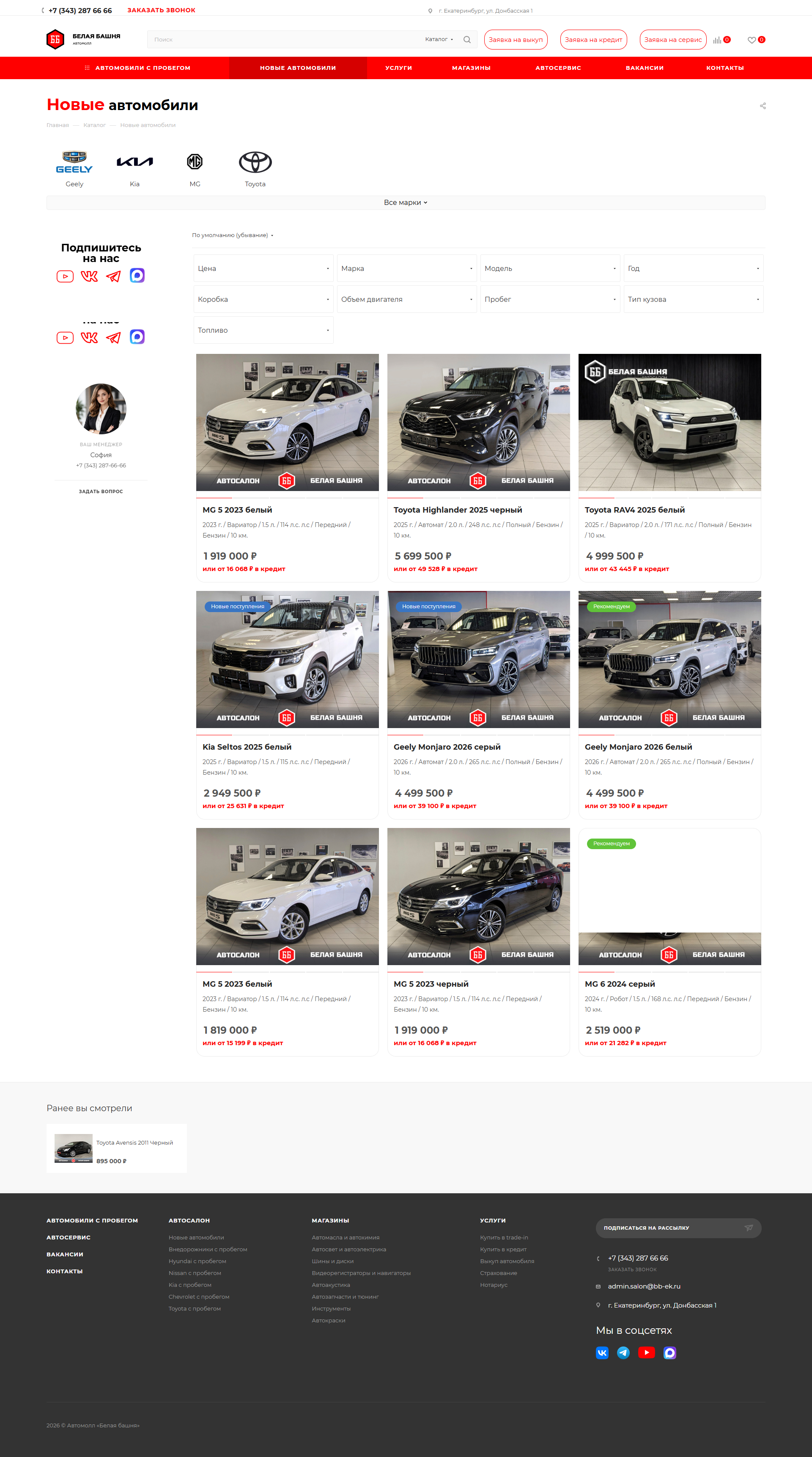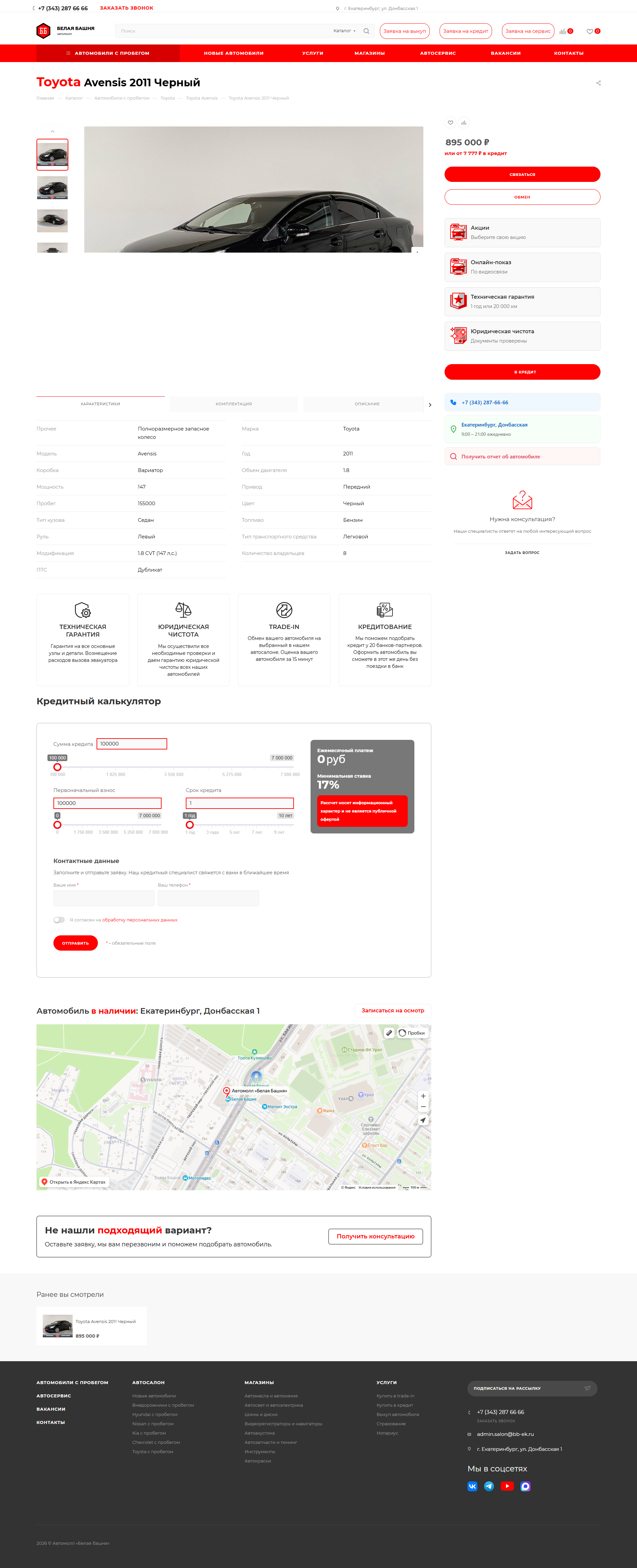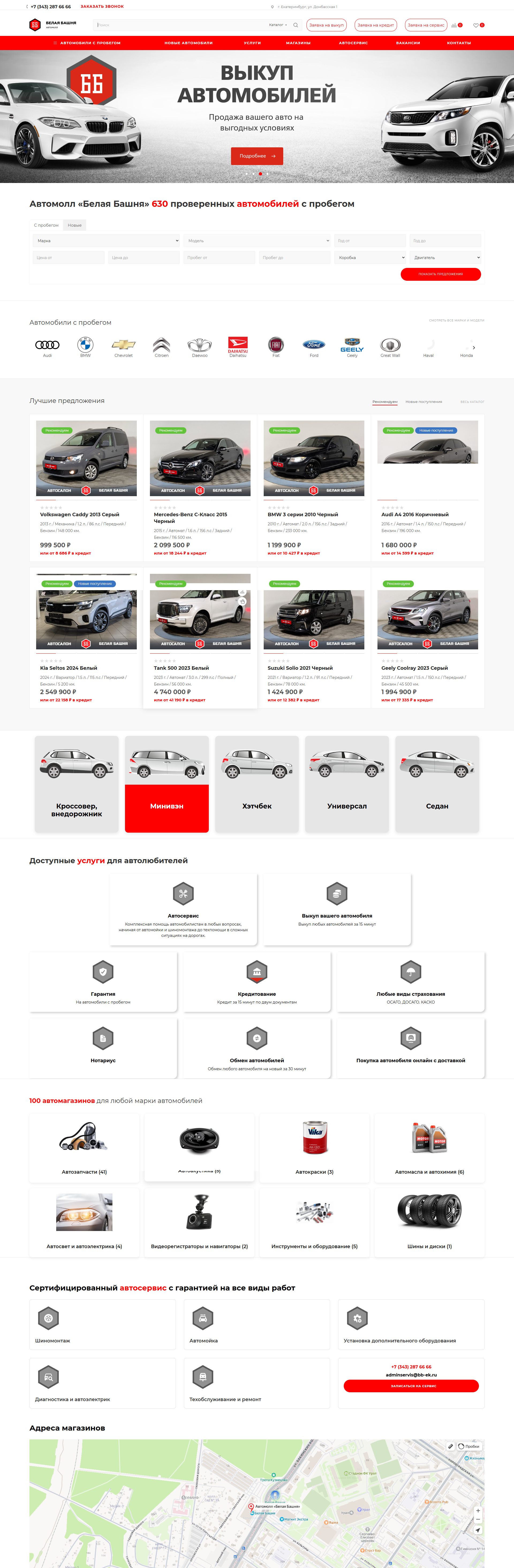 Автомолл «Белая башня» в Екатеринбурге — это одна из самых известных автомобильных площадок на Урале, расположенная в районе Уралмаша по адресу Донбасская, 1