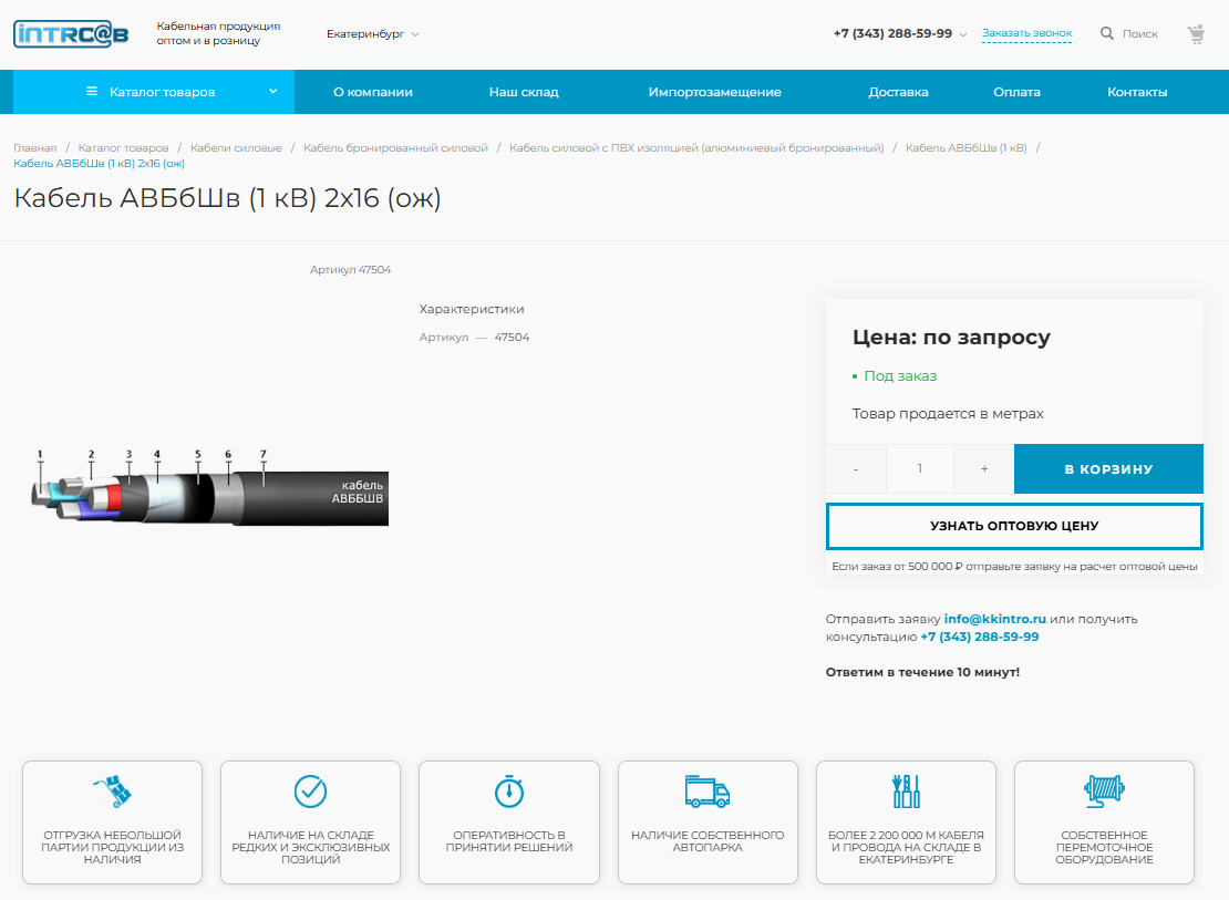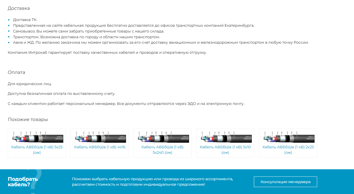 - Заказчик получил сайт современной оптово-розничной компании по кабельной продукции и проводу.