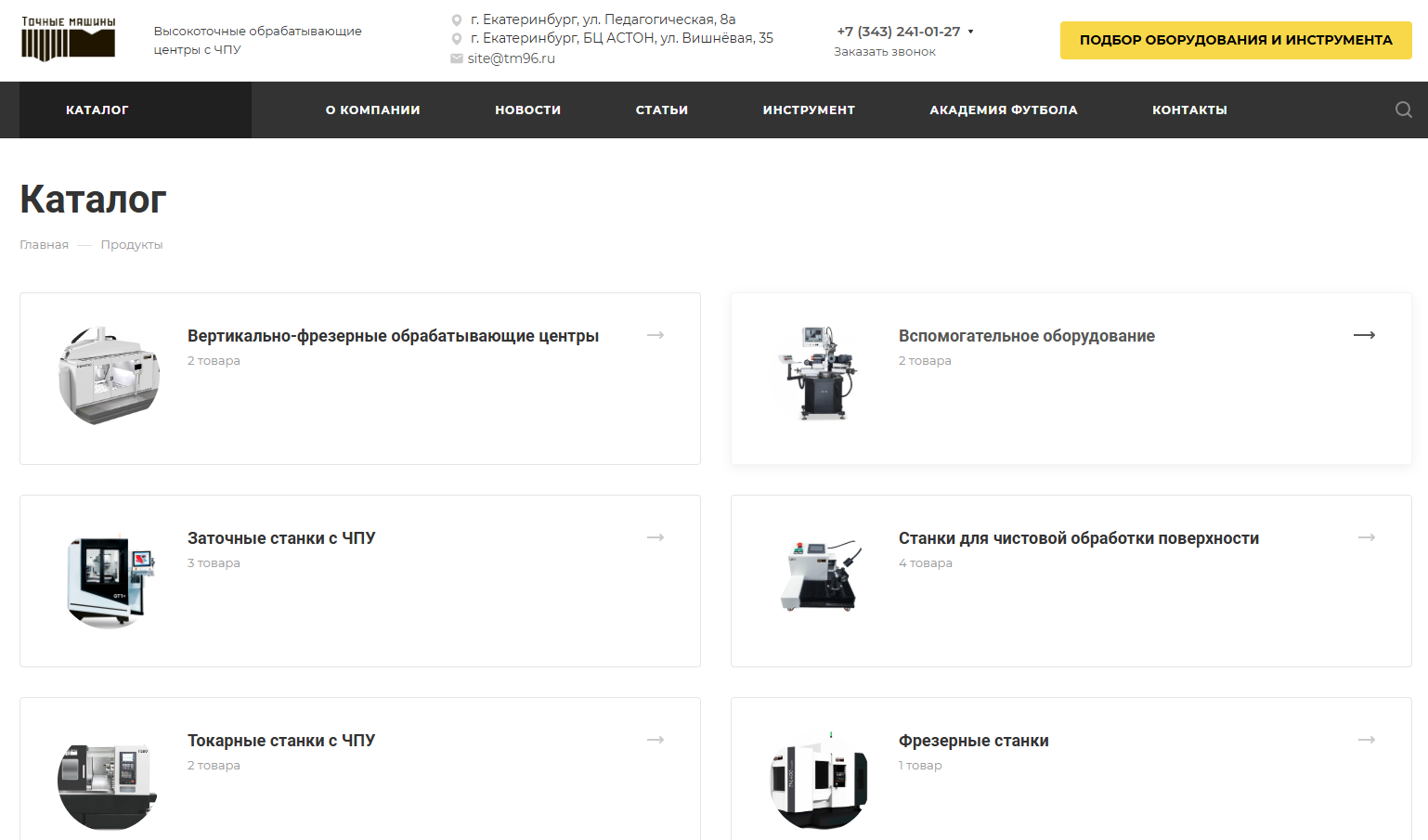 Сайт не имеет возможности профессионально и грамотно презентовать оборудование.