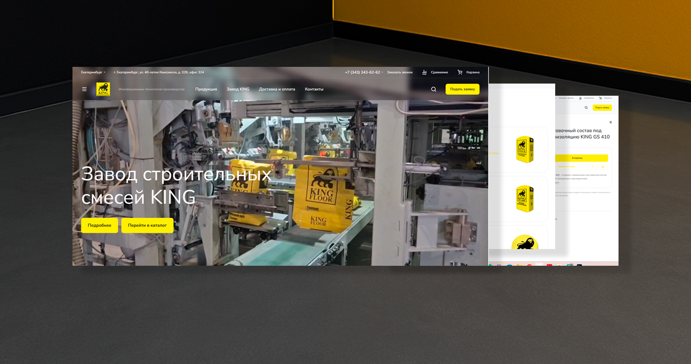 До обращения в нашу компанию у KING-TOP был простой одностраничный сайт. Он не отражал реального масштаба бизнеса и уровня производства, выглядел устаревшим и создавал репутационные риски для бренда:- дизайн выглядел посредственно и не вызывал доверия у крупных подрядчиков и застройщиков;